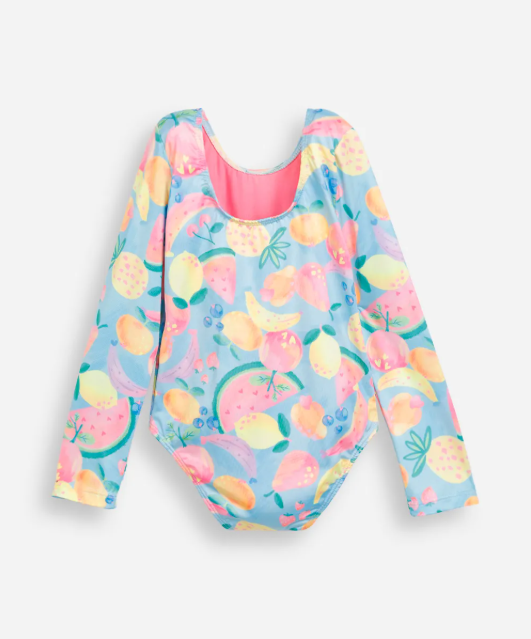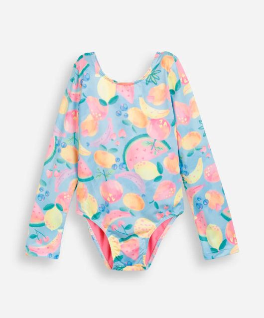 Prepare as pequenas para dias de sol e diversão com este maiô infantil! Perfeito para a moda praia infantil, este modelo une proteção e muito estilo, garantindo que as crianças possam brincar na água com conforto e segurança. O tecido leve e a estampa colorida de frutinhas tornam a peça uma escolha alegre e funcional para a praia ou a piscina.