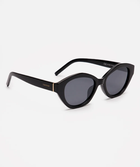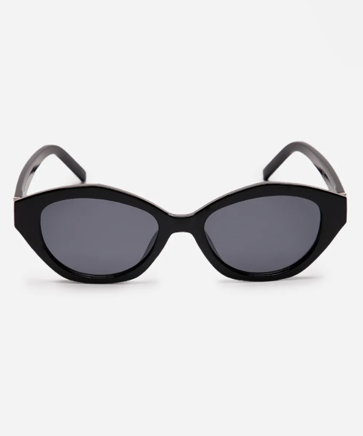 Óculos de sol desenvolvido em acetato resistente na cor preta, com formato oval e as extremidades arredondadas. A lente na cor cinza, a ponte em U e plaquetas embutidas. Com proteção da lente UVA e UVB.